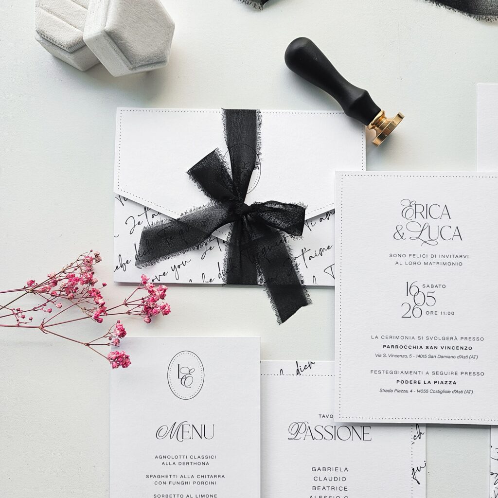 Non c’è un minimo d’ordine e siete voi a scegliere come comporre le vostre partecipazioni e gli elementi del coordinato.